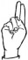 На ћирилици написано АНЂЕЛА ЈОВЕЉИЋ састоји се из 13 слова [?]. Исписано ћириличном једноручном азбуком за глувонеме: